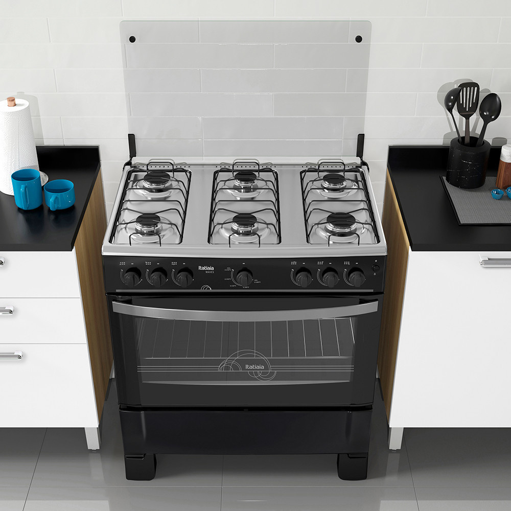 Fogão de Piso 6 Bocas à Gás Itatiaia Waves com Acendimento Automático Preto Bivolt