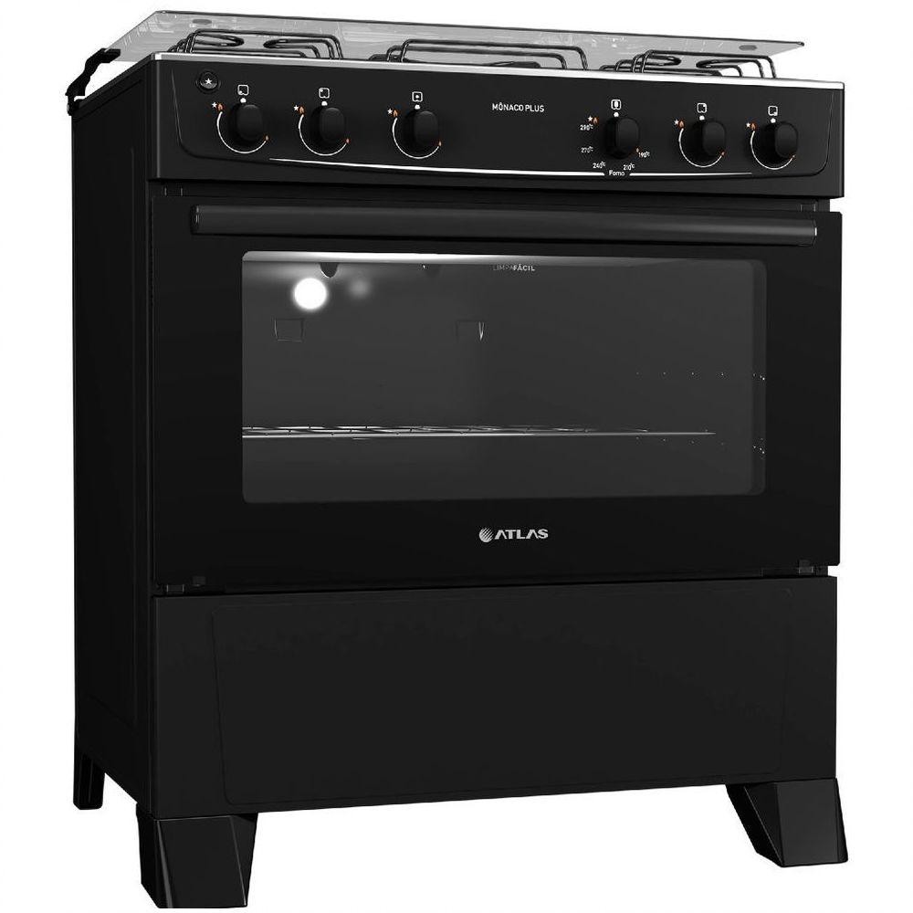 Fogão De Piso Atlas 5 Bocas Monaco Plus Preto Bvolt