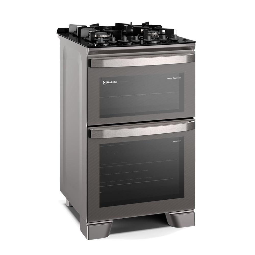 Fogão de Piso Electrolux de 04 Bocas Experience com Duplo Forno e Mesa de Vidro Cinza - FE4DG