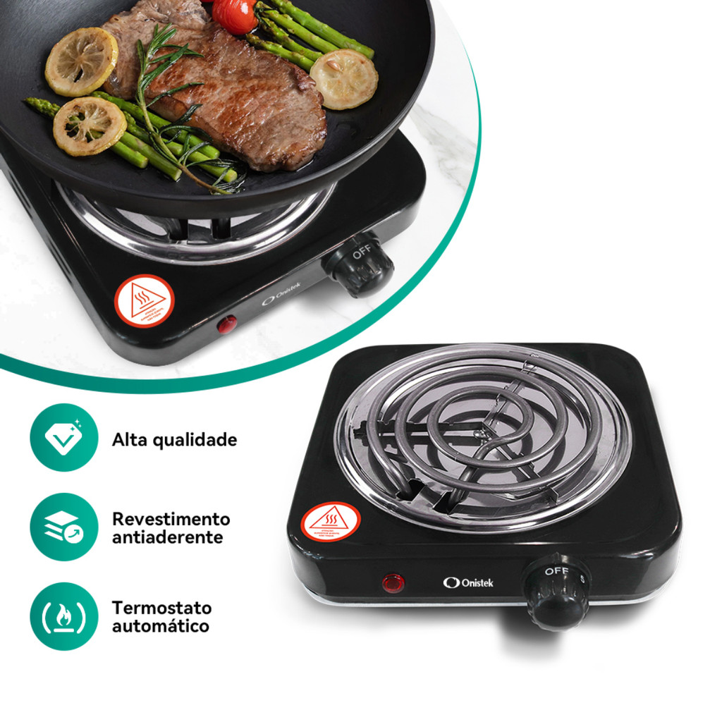Fogão Elétrico Portátil 1 Boca 1000W Compacto Fogareiro 5 Temperaturas ON-FE401