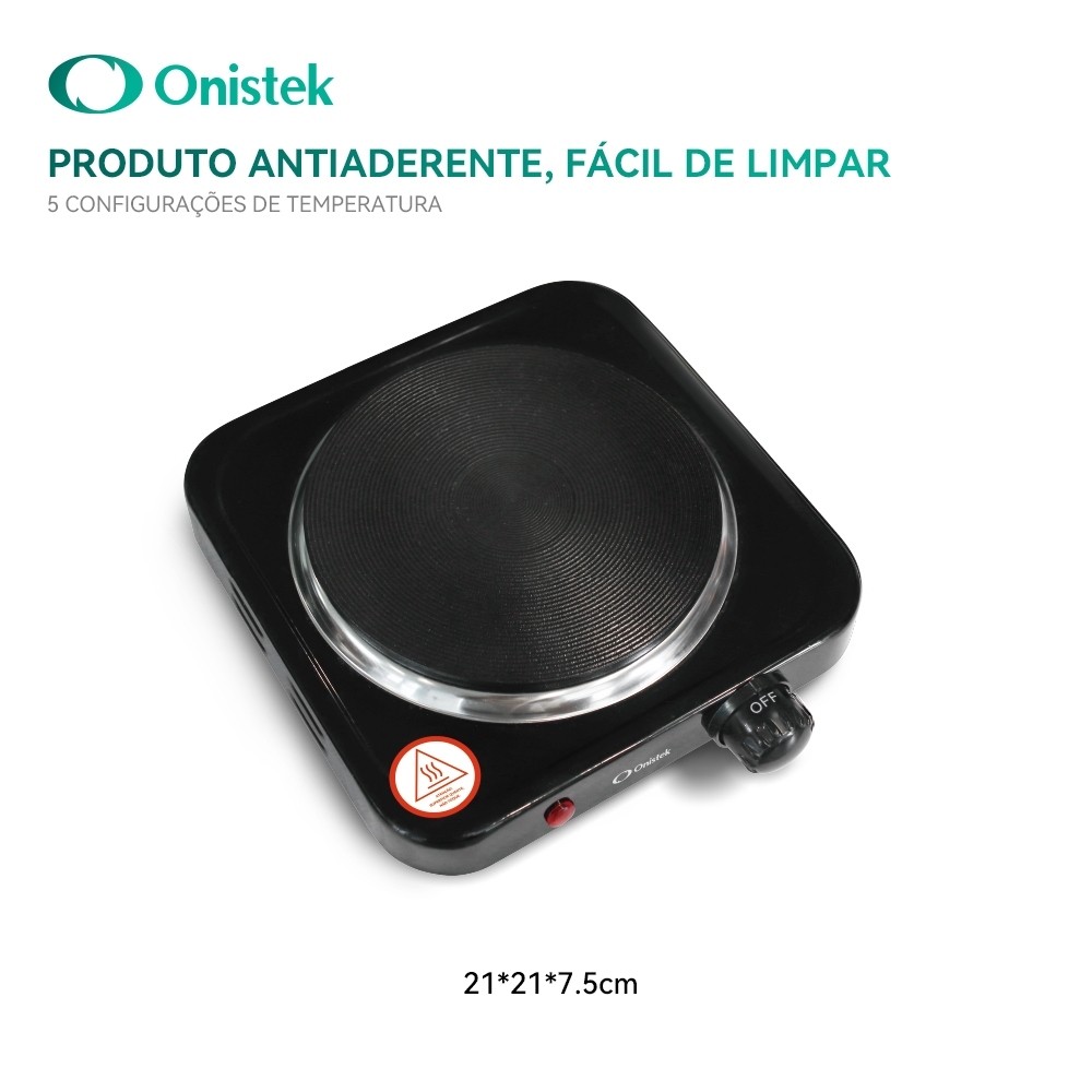 Fogão Elétrico Portátil 1 Boca 1000W Preto Antiaderente 21x21cm 127V/220V ON-FE400