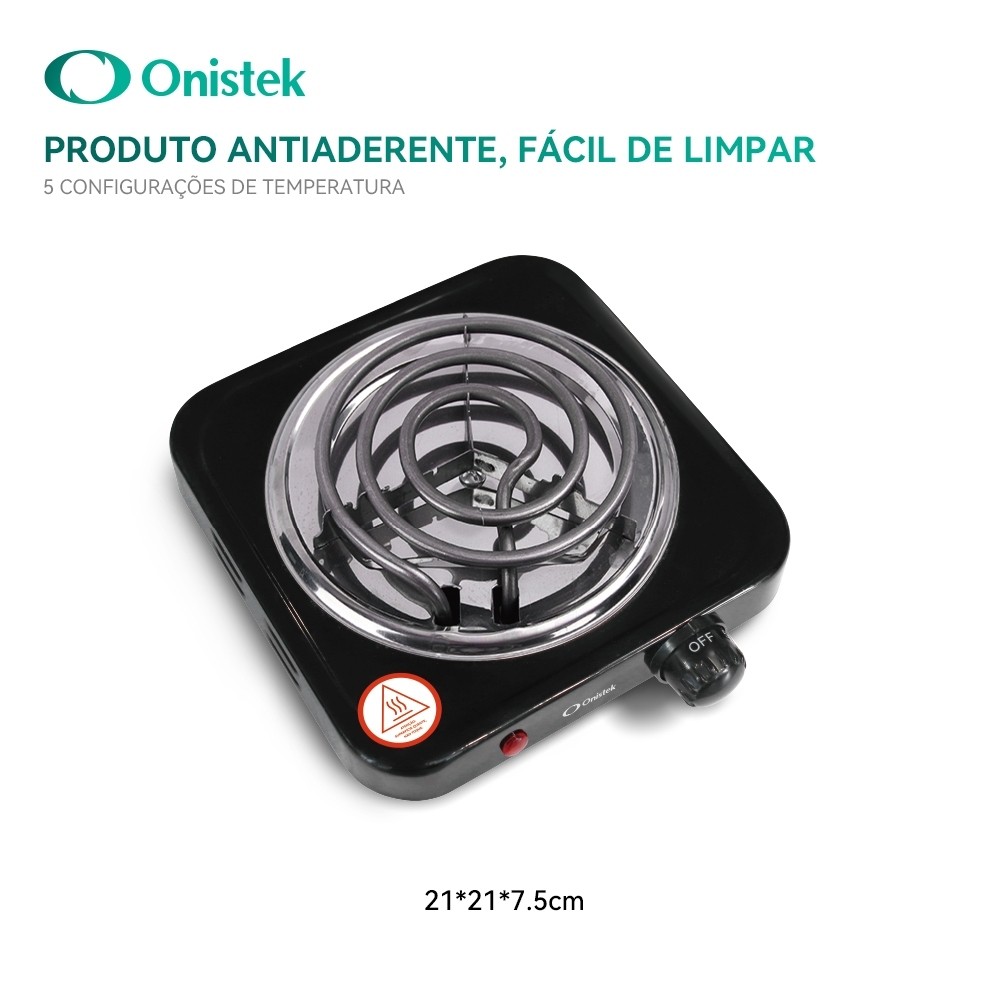 Fogão Elétrico Portátil 1 Boca 1000W Preto Revestimento Antiaderente 21x21cm 127V/220V ON-FE401