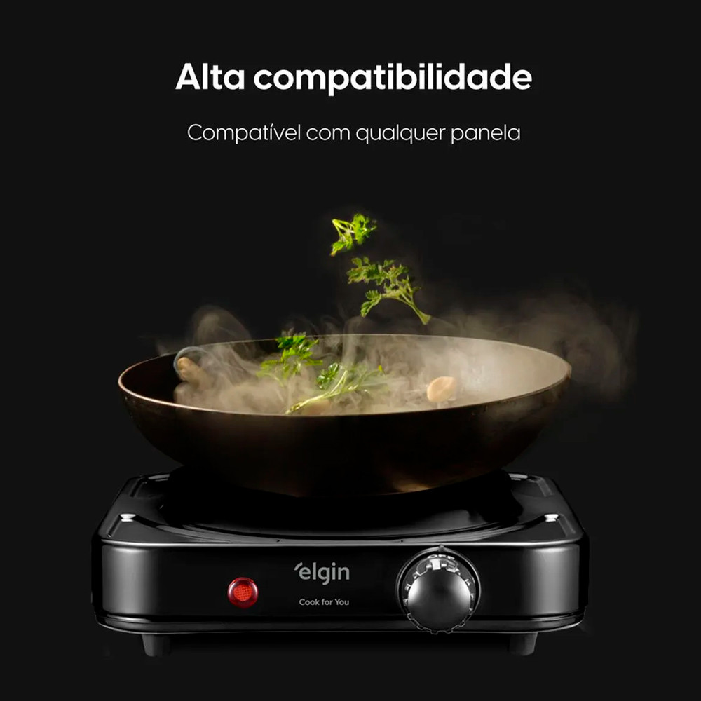 Fogão Elétrico Portátil 1 Boca Single Cook 1000W Preto 220V Elgin