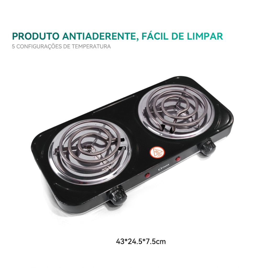 Fogão Elétrico Portátil 2 Bocas Antiaderente Cozinha Rápido Prático ON-FE403