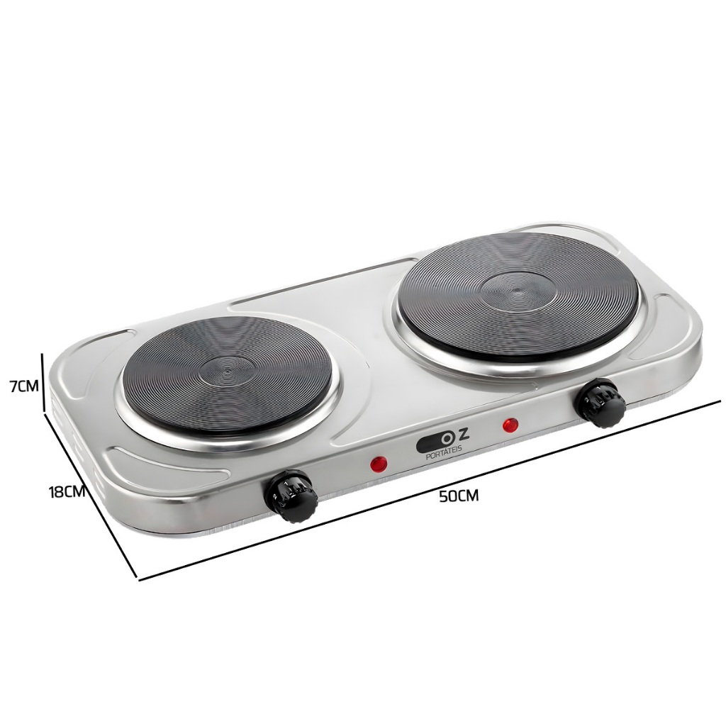 Fogão Elétrico Portátil De Mesa Cooktop 2 Bocas 2000w Aço Inoxidável Fe2000 Oz