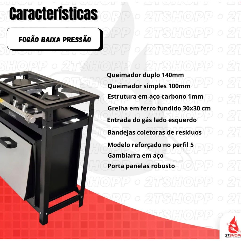 | Fogão Industrial 2 Bocas Com Forno 60 Litros Cristal Aço 30x30 Baix... este produto | R$ 899,90 | 31% | 4.9/5 | 11 |