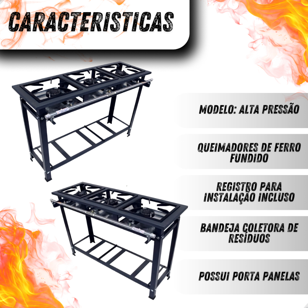 Fogão Industrial 3 Bocas 30x30 Alta Pressão P5 Profissional