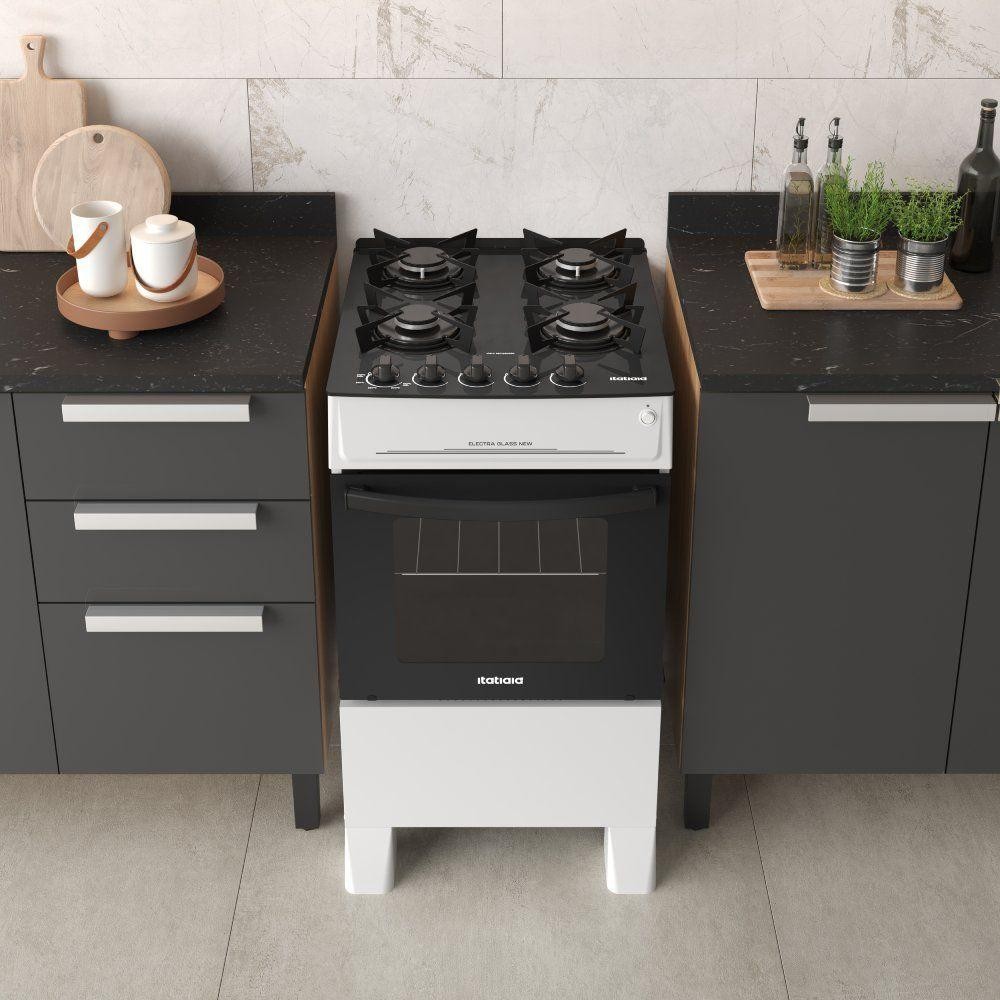 Fogão Itatiaia Electra Glass New Piso 4 Bocas Branco Mesa de Vidro Bivolt 3700000363