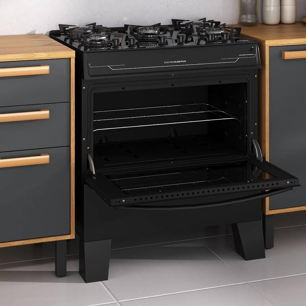 Fogão Itatiaia Electra Glass Plus Piso 5 Bocas Preto Mesa de Vidro - Bivolt (3700000486)