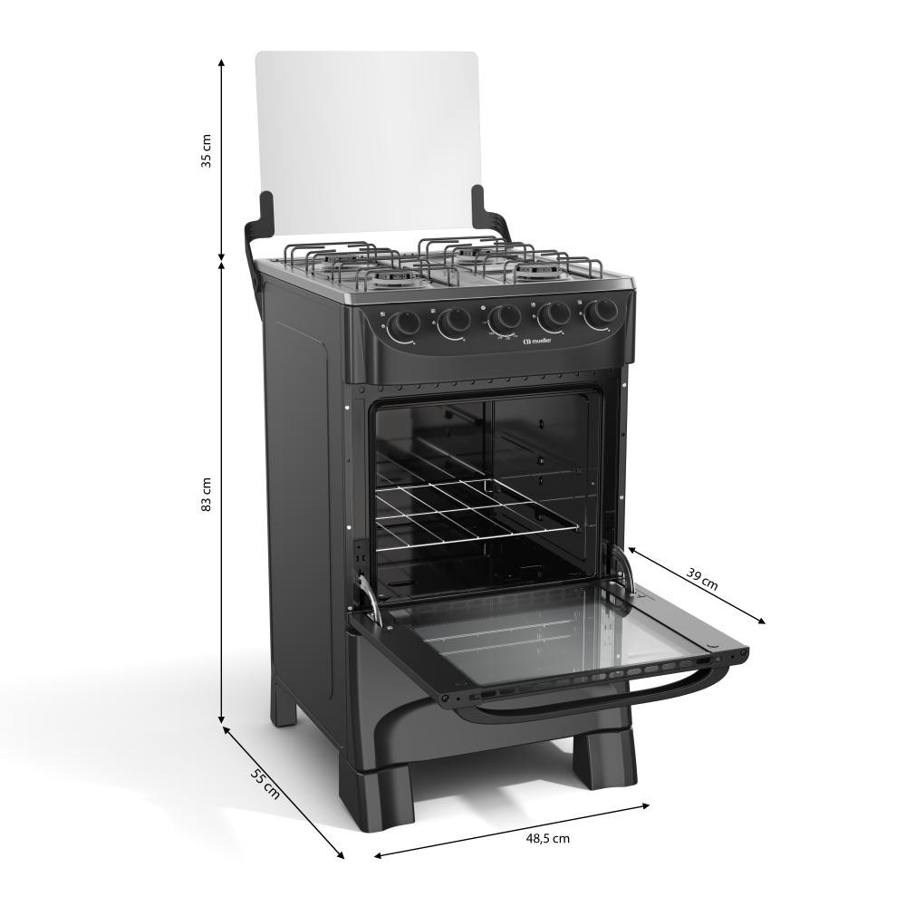 Transforme sua cozinha com o Fogão MFI4BA da Mueller é perfeito para combinar qualidade e praticidade para a sua cozinha. Com 4 bocas, é ideal para otimizar o tempo na rotina do seu dia a dia. Sua cor Preto Fosco, mesa em Inox e tampa de vidro temperado, adiciona beleza e modernidade ao ambiente, combinando com vários estilos de decorações. Seus botões removíveis facilitam a limpeza, além disso, garante segurança, o forno possui válvula de segurança e corta a saída de gás caso a chama do forno seja apagada acidentalmente. O Fogão conta com queimadores em aço esmaltado, painel ergonômico, puxador em metal e proteção térmica com duplo vidro no forno. Não possui voltagem. Especificações: - Acendimento: Manual - Voltagem: Não possui voltagem - Comprimento: 48,5 cm - Largura: 55 cm - Altura: 83 cm - Tipo de Gás: GLP (Conversível para GN) - Mesa em Inox - Tampa de Vidro Temperado - Queimadores em Aço Esmaltado - Puxador do Forno em Metal - Proteção Térmica com Duplo Vidro no Forno - Forno com Válvula de Segurança - Botões Removíveis - Fácil Limpeza - Seguro e Durável - Volume Interno do Forno: 48,1 Litros - Registro INMETRO: 004484/2015 - Cor: Preto Fosco - As configurações do seu monitor ou dispositivo móvel podem afetar a tonalidade da cor do produto. Conferir na descrição. - Produtos de Enfeite e Eletrônicos Não Estão Inclusos.