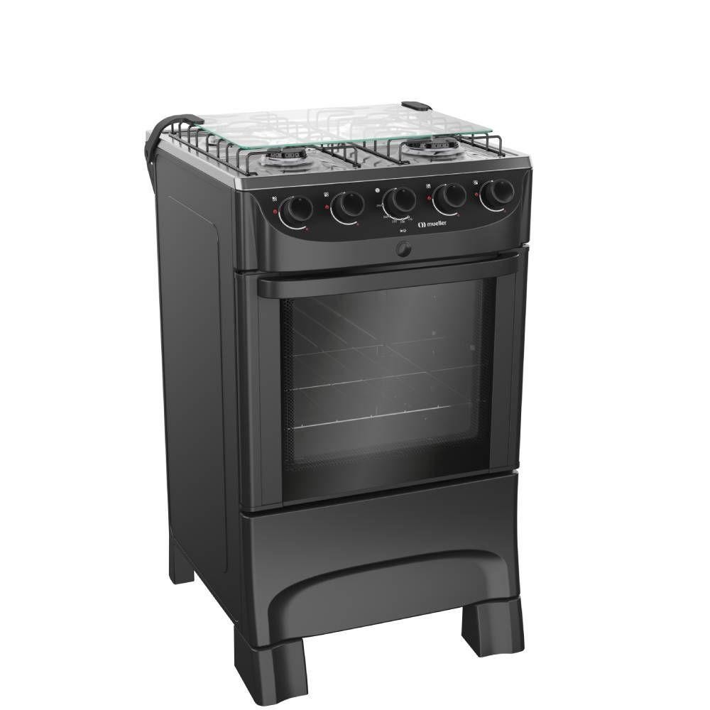 Fogao Mueller 4 Bocas Preto Mesa de Inox com Acendimento Automático Bivolt (MFI4BB)
