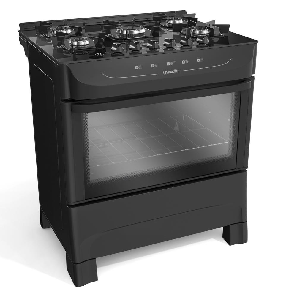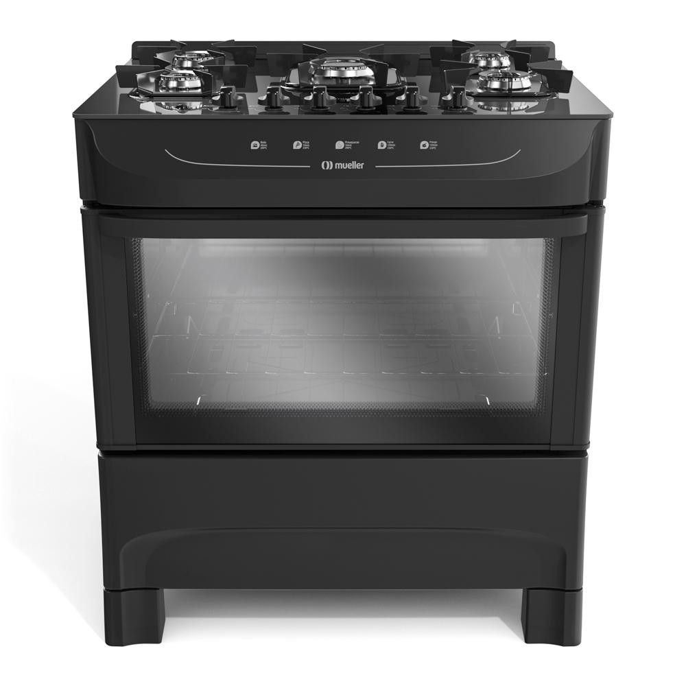 Fogão Mueller 5 Bocas Mesa de Vidro e Acendimento Automático MFV5BB