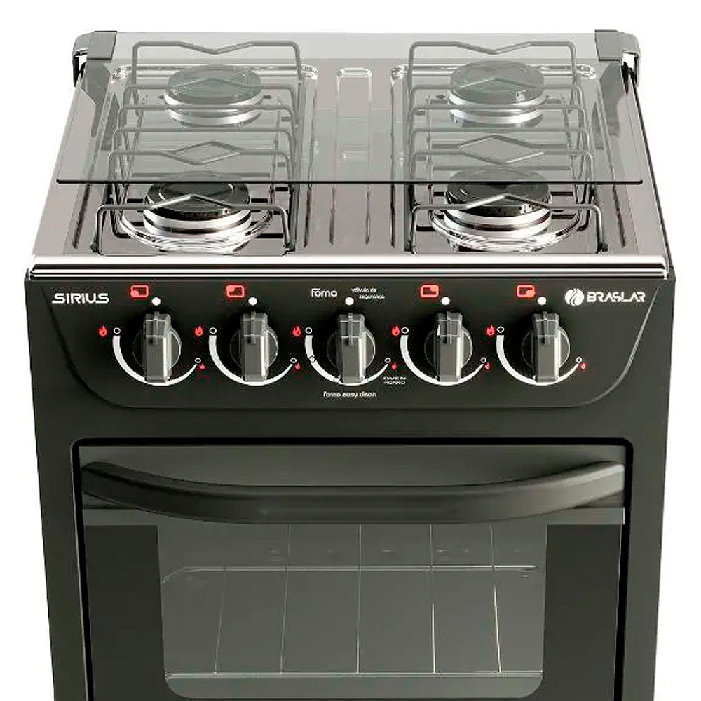 Fogão New Sirius 4 Bocas Manual Mesa em Inox Forno Easy Clean Braslar