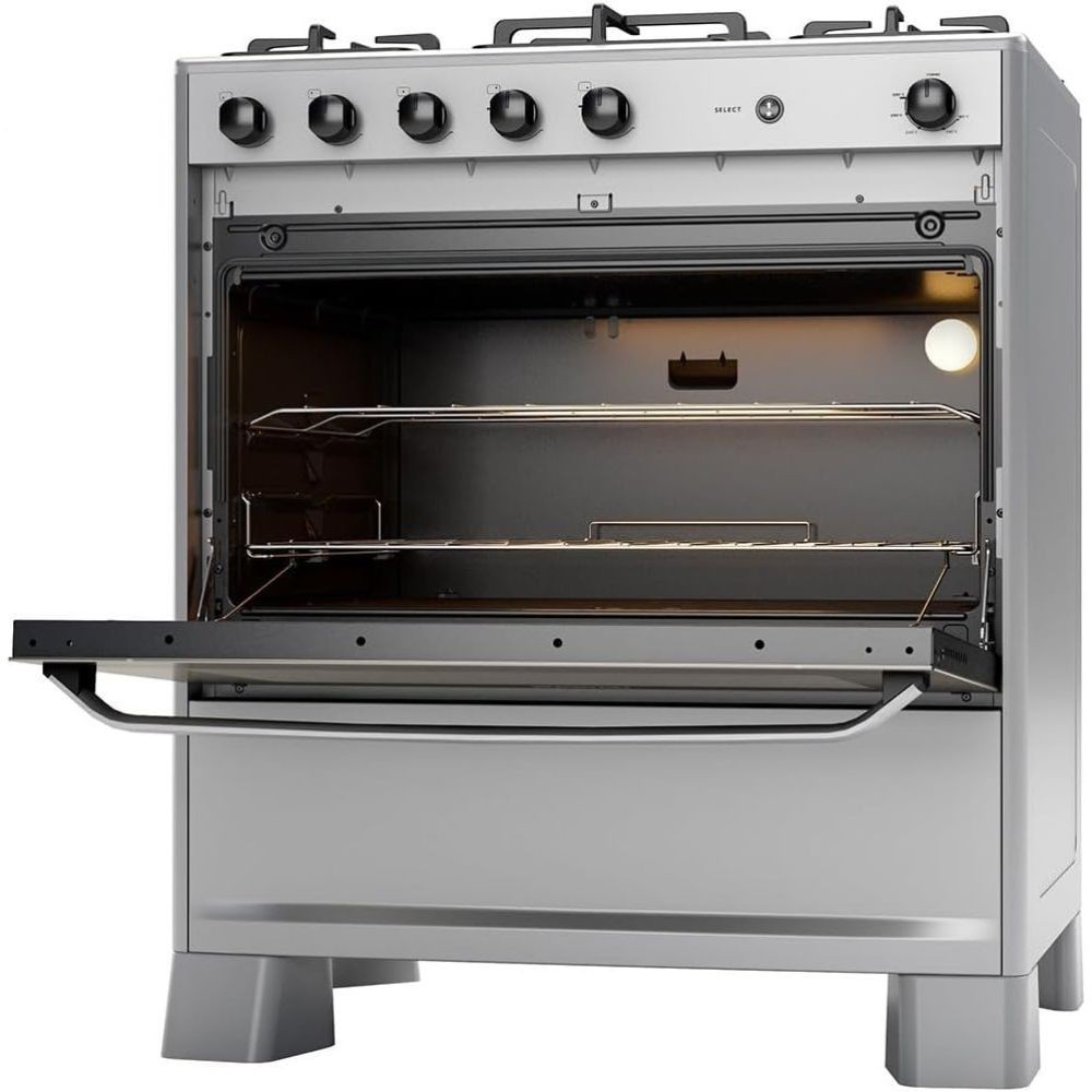 O Fogão Suggar Select 5 Bocas FGISL510PRIX Bivolt é um modelo robusto e eficiente, ideal para quem busca modernidade e praticidade na cozinha. Ele possui mesa de inox escovada, garantindo alta resistência e durabilidade. As trempes duplas são feitas de ferro fundido, proporcionando maior robustez e durabilidade. Entre suas características destacam-se o acendimento automático na mesa e no forno, queimadores injetados e um queimador tripla chama, ideal para preparar refeições de forma rápida e eficiente. O forno tem capacidade de 90 litros e conta com uma porta espelhada, que além de ser estética, facilita a visualização interna. Para maior segurança, o forno é equipado com uma válvula de segurança e dobradiças italianas que amortecem o fechamento da porta. A limpeza do forno é facilitada pelo revestimento interno que impede que a gordura grude. A proteção térmica é garantida pelo vidro duplo na porta do forno, que também possui controle de temperatura de 180°C a 280°C. Além disso, o fogão possui uma grade fixa e uma grade deslizante com três níveis de ajuste, puxador em alumínio escovado, pés elevados que facilitam a limpeza do piso e luz interna no forno (a lâmpada não acompanha o produto). O modelo é bivolt, adaptando-se a diferentes redes elétricas. O Fogão Suggar 5 Bocas Mesa de Inox Prata FGISL510PRIX Bivolt oferece uma garantia de 1 ano contra defeitos de fabricação.