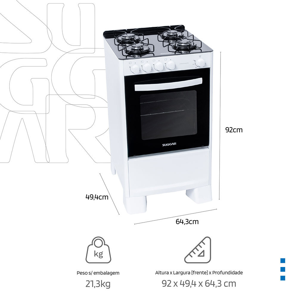 Fogão Suggar de Piso Cook Essence 4 Bocas com Mesa de Vidro
