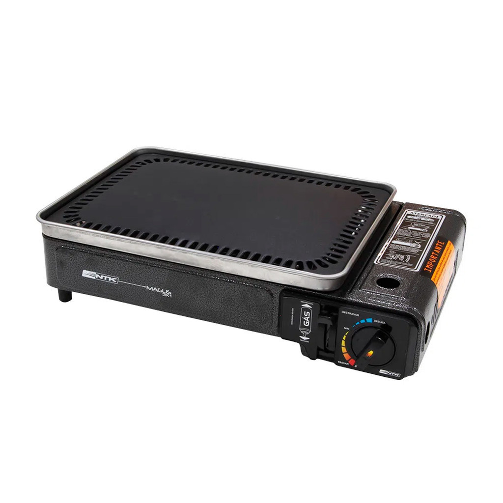# Auto Equip # Seja bem-vindo(a)!!! --- Descrição: Fogareiro e Churrasqueira NTK Magus com acendedor automático Preparar as refeições no camping ou em casa com um fogareiro portátil facilita muito, principalmente para quem viaja em kombis, motorhome, vans, entre outros. O fogareiro Nautika Magus 3 em 1 funciona como chapa, grelha ou fogão tradicional, é extremamente eficiente, prático e versátil em todos os modos. Possui sistema de regulagem fina de alta potência que permite controlar a intensidade da chama, ajudando a controlar o consumo de gás e gerando assim maior economia. O produto possui sistema Flex Fuel de abastecimento, ou seja, pode ser utilizado com cartucho de gás ou com botijão de gás convencional (GLP). Mais versátil impossível. Fabricado em aço galvanizado, possui ótima resistência e segurança. Conta com acendedor automático (sistema Click piezo de ignição eletrônica) que facilita sua utilização, proporcionando maior segurança e facilidade ao acender a chama. Além disso, inclui 4 espetos, dispositivo de segurança para controle da saída de gás e maleta para fácil transporte. Para limpeza do seu fogareiro, só é necessário o uso de uma esponja macia e pano úmido. Quando não for mais utilizar, não se esqueça de retirar o cartucho de gás e manter longe de fontes de calor. Pesa 4,27 kg, tem medidas de 31 cm (A) x 12 cm (L) x 44 cm (P) e está disponível na cor cinza. O fogareiro Magus 3 em 1 da Nautika é uma excelente escolha para aventureiros que possuem o costume de acampar em locais de fácil acesso, como campings, praias, dias de pesca e viagens em vans, kombis e motorhome. ATENÇÃO: Esse produto não acompanha cartucho de gás ou botijão. Não é considerado um item inflamável. Informações gerais - Material: Aço galvanizado com pintura epóxi especial e base revestida com enamel atóxico - Dimensões: 12 x 44 x 31cm - Consumo de gás: 160g/h - Marca: NTK Conteúdo da Embalagem - 01 Fogareiro e Churrasqueira NTK Magus com acendedor automático Importante - Garantia de 03 meses; - Pedidos aprovados até 12h00 de segunda a sexta será enviada no mesmo dia; - Enviamos em até 24h úteis; - Imagens meramente ilustrativas; - A cor do produto pode variar de acordo com a tela do seu smartphone ou computador; - Utilize o campo de "Perguntas e respostas" e esclareça suas dúvidas com nosso suporte técnico.