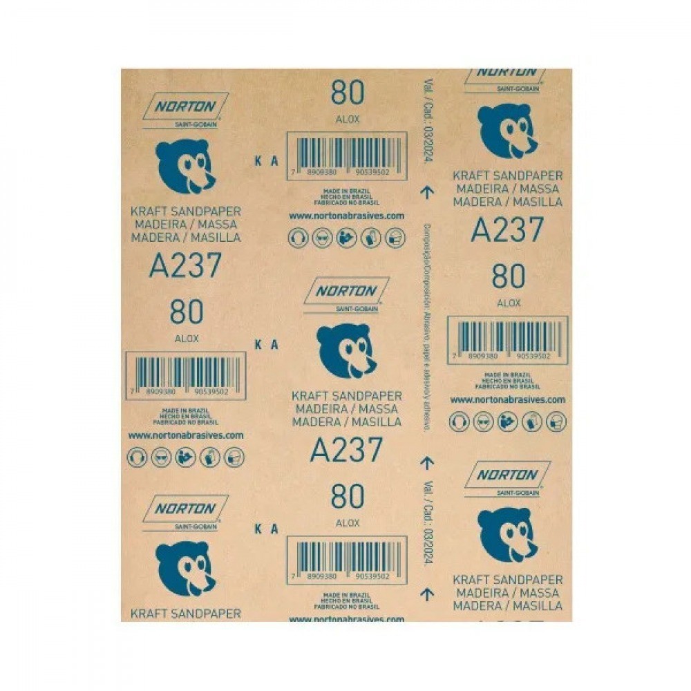 Produto: Folha de lixa para madeira e massas 225x275mm - A237 Norton Marca: Norton Descrição: A Folha de lixa para madeira e massas 225 x 275 mm A237 da Norton é a escolha ideal para quem busca um acabamento impecável em superfícies de madeira. Com dimensões de 225 x 275 mm, esta lixa de papel é equipada com grão Óxido de Alumínio Marrom, proporcionando um lixamento eficiente e de alta qualidade. Seja para uma reforma detalhada ou para o acabamento de um projeto de marcenaria, a Folha de Lixa Madeira A237 oferece desempenho superior e resultados profissionais. Experimente a eficiência e a qualidade desta lixa e leve seus projetos de madeira ao próximo nível. Benefícios - Alta performance: Grão de óxido de alumínio marrom proporciona um lixamento rápido e eficaz; - Versatilidade: Ideal para diversos tipos de madeira e aplicações; - Acabamento perfeito: Garante um acabamento suave e uniforme; - Flexibilidade: O costado de papel permite que a lixa se adapte a diferentes superfícies. Especificações: Material: Papel com grão de óxido de alumínio marrom; Tamanho: 225 x 275 mm; Aplicação: Lixamento a seco de madeira; Benefícios: Remoção eficiente de material, acabamento suave e flexibilidade. Peso: 0.04 Kg