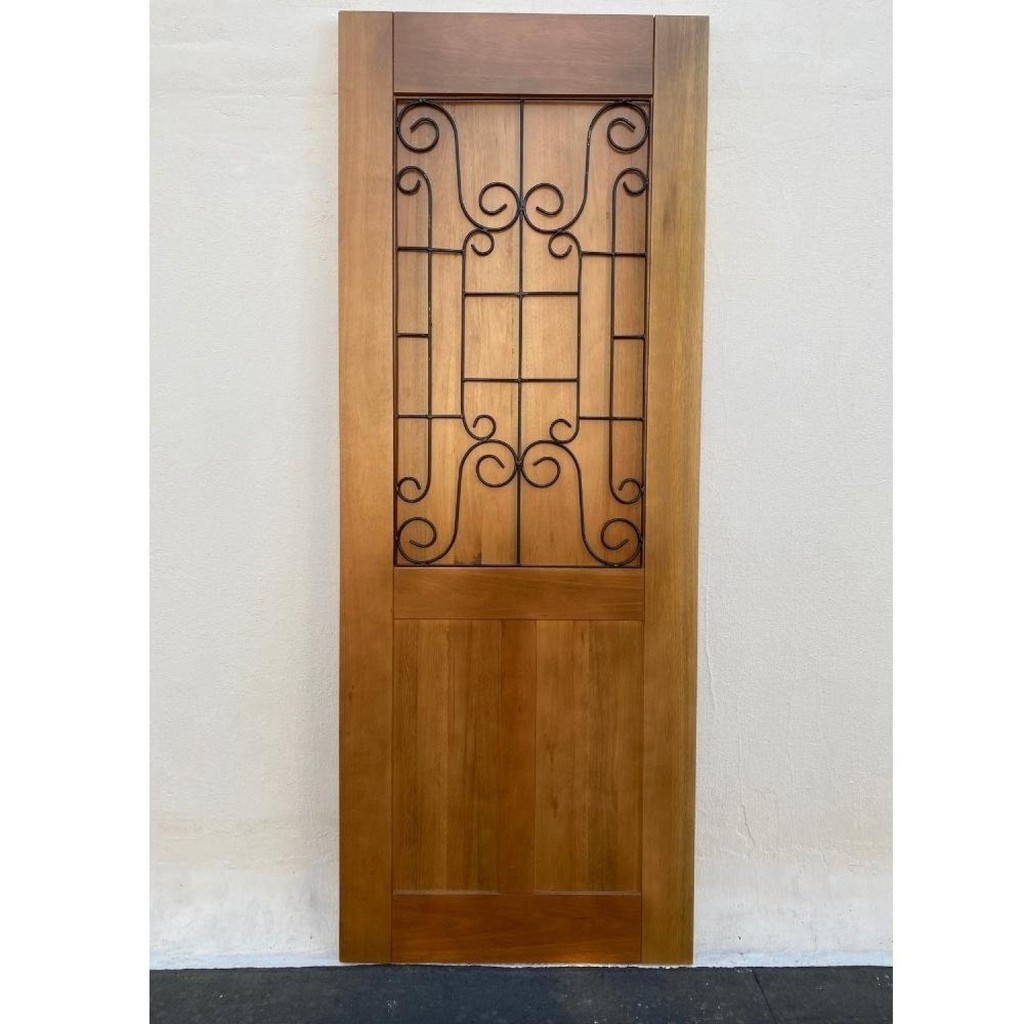 Folha de Porta Madeira Maciça Meia Grade Noruega 80x210x3,5cm Cedro Rosa