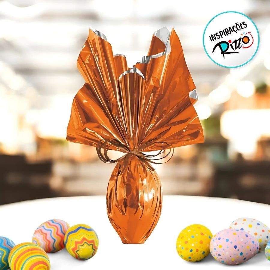Folha para Ovos de Páscoa Metalizado Laranja 69x89cm - 5 unidades - Cromus - Rizzo.