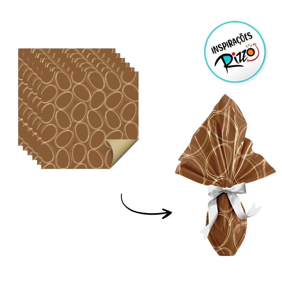 Folha para Ovos de Páscoa Tonal Marrom e Ouro 69x89cm - 5 unidades - Cromus - Rizzo