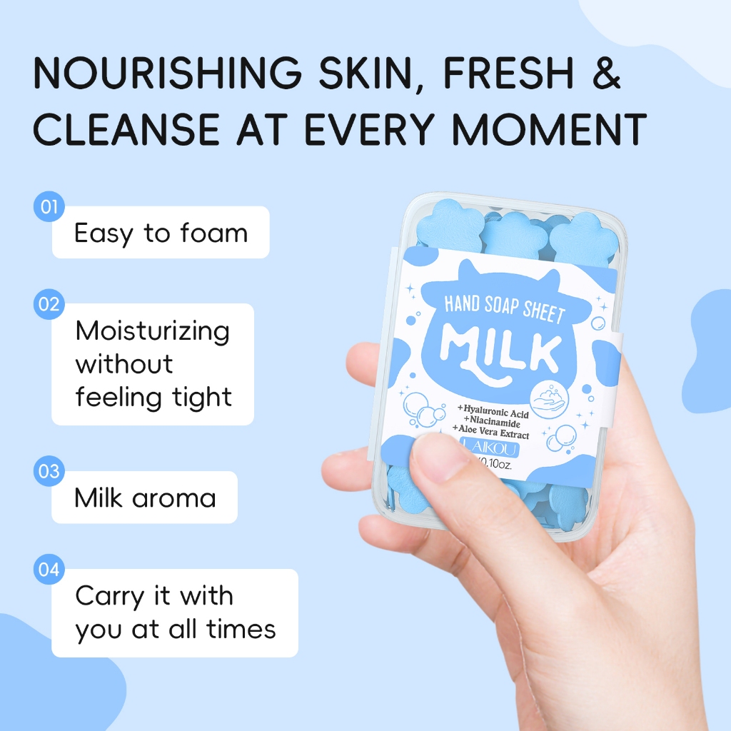 Folhas De Sabonete Para Mãos Com Leite LAIKOU , Limpeza Suave , Hidratação Profunda , Fácil De Transportar , 3 G/Caixa
