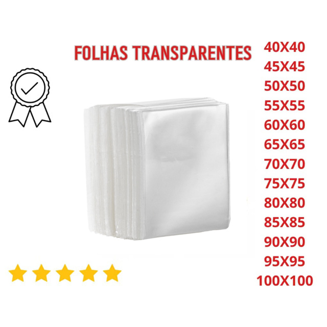 | Folhas Transparente Tipo Celofane Alta Qualidade Tamanhos Grandes | R$ 13,90 | 1% | 4.9/5 | 386 |