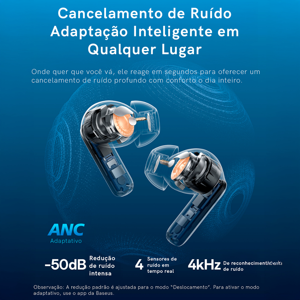 🎧 Baseus MA10 Pro – Fone Bluetooth 5.3 com ANC -48dB, 40h e Display Digital Experimente áudio de alta definição, cancelamento de ruído poderoso e conforto total no dia a dia. O Baseus MA10 Pro foi desenvolvido para quem busca qualidade premium, tecnologia atualizada e máxima imersão sonora. 🔇 Cancelamento de Ruído Ativo (ANC) -48dB Reduza ruídos externos e mantenha o foco com a tecnologia de ANC capaz de bloquear até 48dB. Ideal para viagens, ônibus, academia e ambientes barulhentos. 🎤 4 Microfones ENC – Chamadas Claras Sistema ENC com 4 microfones que filtra ruídos ao redor e entrega voz nítida em chamadas, reuniões e gravações. 🎵 Áudio Espacial 3D Sinta mais profundidade e realismo no som. A tecnologia 3D envolve você como se estivesse no centro da experiência. 💧 IPX6 – Resistente à Água Proteção contra suor e respingos, perfeito para treinos e uso outdoor. ⚡ Bluetooth 5.3 + Carregamento Rápido Conexão estável, baixa latência e mais eficiência energética. Carregamento rápido com fio para quem precisa de bateria em poucos minutos. 🔋 Até 40h de Autonomia Total Use por longos períodos sem se preocupar com carga. Autonomia combinada entre estojo + fones. 📟 Estojo com Exibição Digital Acompanhe a carga exata dos fones e do estojo através do visor LED inteligente. 📦 Conteúdo da Embalagem 2x Fones Baseus MA10 Pro 1x Estojo de carregamento com display digital 1x Cabo de carregamento 3x Pares de eartips Manual e documentação ✔️ Loja Oficial Baseus Brasil na Shopee ✔️ Produto Original Baseus ✔️ Novo e Lacrado ✔️ Homologado pela Anatel ✔️ Garantia oficial de 12 meses ✔️ Emitimos Nota Fiscal