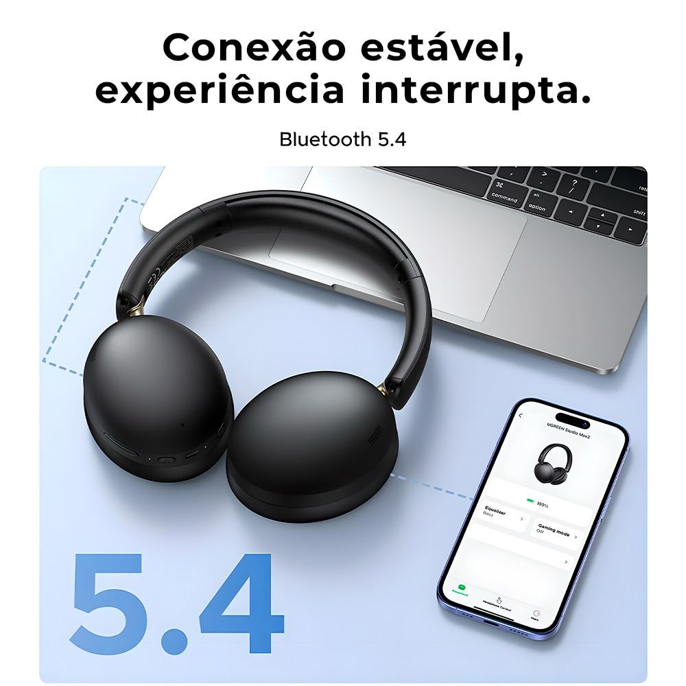 Ugreen HiTune Max2 Headphone Bluetooth 5.4 Sem Fio com Driver 40mm, Microfone com Redução de Ruído por IA para Chamadas, Bateria até 80h, Conexão com 2 Dispositivos e 8 Modos de Equalização 1. Áudio Imersivo com Driver de 40 mm O Ugreen HiTune Max2 Headphone Bluetooth foi projetado para oferecer áudio detalhado e equilibrado. Seus drivers dinâmicos de 40 mm proporcionam graves profundos, médios claros e agudos definidos, ideal para música, vídeos, streaming e jogos no dia a dia. 2. Bluetooth 5.4 com Conexão Estável Equipado com tecnologia Bluetooth 5.4, o Ugreen HiTune Max2 oferece conexão rápida e estável com smartphones, tablets, notebooks e outros dispositivos compatíveis. A baixa latência ajuda a manter áudio e imagem sincronizados em vídeos e jogos. 3. Microfone com Redução de Ruído por IA em Chamadas O headphone conta com microfones duplos e algoritmo de IA que ajudam a reduzir ruídos do ambiente durante chamadas. Essa tecnologia atua apenas no microfone para melhorar a captação da voz, permitindo conversas mais claras em diferentes ambientes. 4. Bateria de Longa Duração até 80 Horas O Ugreen HiTune Max2 possui bateria de alta capacidade que oferece até 80 horas de reprodução. A função de carga rápida permite cerca de 5 horas de uso com apenas 5 minutos de carregamento, ideal para rotinas intensas. 5. Conforto, Multiconexão e Personalização de Áudio Com design leve e almofadas macias, o headphone foi desenvolvido para uso prolongado. Permite conexão com dois dispositivos ao mesmo tempo e oferece 8 modos de equalização para ajustar o perfil sonoro conforme seu estilo de música ou atividade. Garantia 90 dias - SKU 10892 - Number - 45018 - EAN 6941876240180- MARCA: UGREEN SKU: 10892 R.NUMBER: 45018 EAN: 6941876240180