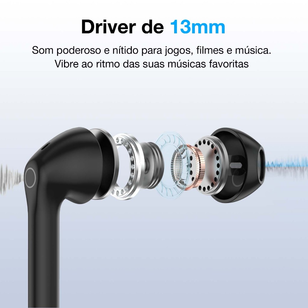 Fone de ouvido Bluetooth 5.3 Sem Fio 1HORA AUT201 Intra auricular confortável Com Microfone