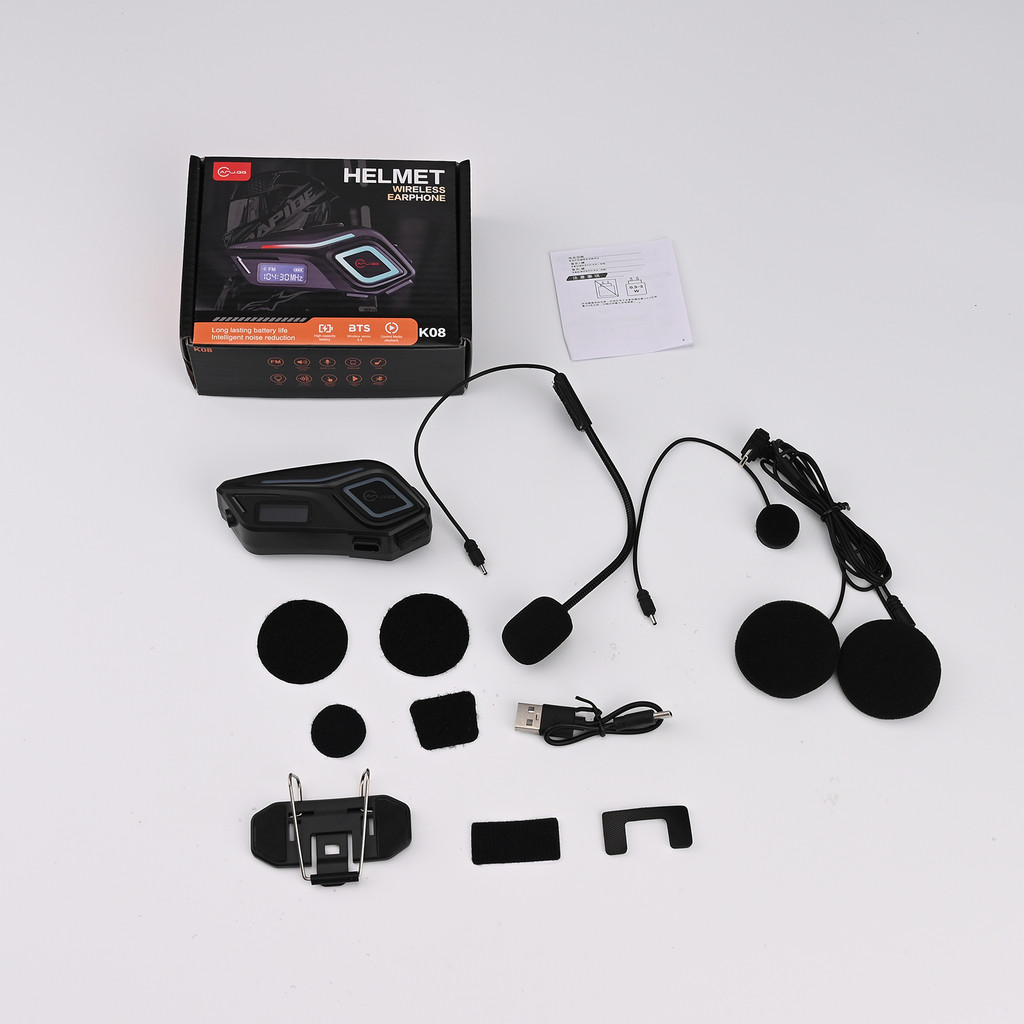 Características: Microfone dois em um (microfone macio + microfone rígido) Bluetooth 5.4 Dois motociclistas conversam simultaneamente Alcance efetivo de até 500 metros (2625 pés) Velocidade máxima de até 120 km/h (75 mph) Este fone de ouvido Bluetooth para capacete suporta rádio FM, chamadas viva-voz, reprodução de música MP3 estéreo e comandos de voz por GPS. O sistema de intercomunicação para motocicletas com tela LCD exibe o status do pareamento, tornando a operação da bateria mais conveniente. O intercomunicador Bluetooth para motocicletas Q58-MAX oferece comunicação segura, conveniente e eficiente durante a pilotagem. A distância de transmissão pode chegar a 500 metros (875 jardas) e a velocidade máxima pode chegar a 120 km/h (75 mph). Ele permite que dois motociclistas conversem simultaneamente. O sistema de comunicação para motocicletas é equipado com uma interface Bluetooth 5.3, que pode ser conectada a celulares, MP3 players e sistemas GPS. O tempo de espera é de até 10 horas (celular) / 7 horas (interfone) e 300 horas. Este fone de ouvido Bluetooth para motocicleta possui função de controle de um toque, que permite alternar facilmente entre FM/música e interfone, ajustar o volume e rejeitar ou atender chamadas. Função de controle de um toque, que permite alternar facilmente entre FM/música e interfone, ajustar o volume e rejeitar ou atender chamadas.