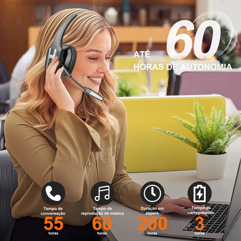 Fone de ouvido Bluetooth mãos-livres para uso em call centers