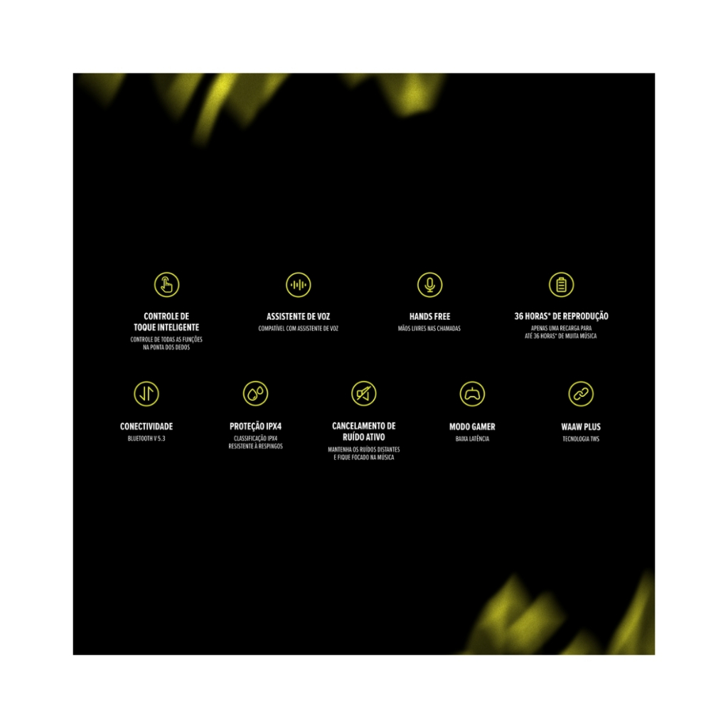 Fone de Ouvido Bluetooth MOB 500 ANC Com Modo Gamer e Cancelamento de Ruído Ativo e Proteção IPX4 Waaw By Alok --- Descrição --- - Para uma experiência sonora inteligente em qualquer atividade ou lugar. - Sinta-se livre e confiante para ouvir sua playlist com uma conexão rápida e estável a todo momento. - Além de proporcionar até 36 horas* de reprodução sem parar, a tecnologia de cancelamento de ruído ativo do WAAW EARPHONE BLUETOOTH NOISE CANCELLING MOB 500 reduz o som externo, para uma experiência de imersão completa. - O poder está na ponta dos seus dedos! Controle todas as funções do fone de ouvido Bluetooth com o controle de toque inteligente. - Resistente à água, o índice de proteção IPX4 permite que ele te acompanhe desde longas reuniões até os dias mais intensos. - Dê um up na produtividade ao realizar chamadas, enviar mensagens ou controlar a reprodução de músicas com a rapidez da conexão entre o assistente de voz e seu dispositivo. - Transforme a rotina com experiências mais inteligentes. - A tecnologia hands free do fone sem fio permite comandos simples, que te libertam para focar no que importa. - A vantagem que faltava para você assumir a liderança é o modo gamer do WAAW MOB 500 ANC. - Com menor tempo de resposta para uma performance superior, o áudio é sincronizado com as ações do jogo, proporcionando imersão e precisão total. - Para explorar todas as funções, a tecnologia WAAW PLUS (TWS) permite aproveitar sua playlist sem fios, de forma totalmente independente. - Além de garantir som de alta qualidade em cada batida das suas canções, o Bluetooth V5.3 do fone de ouvido promove uma conexão estável o tempo todo. - Pronto para acompanhar sua rotina, o MOB 500 conta com até 6 horas de duração da bateria nos fones de ouvido e até 30 horas na case, garantindo áudio o dia todo. - O match perfeito entre tecnologia, conforto e desempenho para o seu dia a dia! - Experimente a liberdade dos controles intuitivos e inteligentes do WAAW EARPHONE BLUETOOTH NOISE CANCELLING MOB 500 e sinta cada batida como nunca. WAAW | Respeita Sua Batida. --- Características --- • Através controle de toque inteligente, você ajusta todas as funções do fone com um simples toque. • Faça chamadas, envie mensagens e controle suas músicas rapidamente com a ajuda da conexão entre seu dispositivo e o assistente de voz. • A tecnologia hands free permite manter suas mãos livres enquanto gerencia chamadas e músicas. • Com apenas uma recarga, o MOB 500 oferece até 36* horas de música. • Aproveite conexões mais rápidas, estáveis e de maior alcance com a tecnologia Bluetooth V5.3. • A classificação IPX4 de proteção garante que o fone Bluetooth seja resistente à respingos de água. • O cancelamento de ruído ativo proporciona imersão total na sua música ou chamadas. • O modo gamer baixa a latência para uma experiência imersiva com som de alta qualidade. • Use os fones sem fios e de forma totalmente independente um do outro com o WAAW PLUS. --- Especificações Técnicas --- • Cor: Preto, Cinza e Verde; • Material: Polímeros; • Impedância do Speaker (ohms): 32; • Quantidade de Full Range: 2 (1 por fone); • Resposta de Frequência (Hz): 20Hz~20kHz; • Versão Bluetooth: 5.3; • Tempo Reprodução Música (h): 36 horas (1 carga da tomada + 5 cargas da case); • Tempo de Carregamento (h): 02:00h; • Capacidade da Bateria (mAh): Case: 500mAh / Produto: 40mAh; • Tipo da Bateria: Íons de Lítio; • Índice de Proteção: IPX4; • Tipo Conexão Entrada Carregamento: USB-C; • Perfis Bluetooth: A2DP / AVRCP / VDP / HFP / HSP; • Alcance Máximo (m): 10; • Desligamento Automático: Após 5m; • Certificação ANATEL: Sim; • Potência de Saída (W) (RMS): 2m; • Número de Canais de Som: 1; • Configuração do Driver: Unidirecional; • Fonte de Alimentação: 5V~2A; • Sensibilidade: 104 dB +/- 3dB. --- Dimensões — - Do Produto - • Altura: 3,1 cm; • Largura: 6,9 cm; • Comprimento: 3,7 cm; • Peso: 0,037 Kg. - Da Embalagem - • Altura: 11,8 cm; • Largura: 5 cm; • Comprimento: 10,4 cm; • Peso: 0,193 Kg. --- Composição da Embalagem --- • 1 Par de Earphones MOB 500 ANC; • 3 Tamanhos de borrachinhas auriculares (P, M, G); • 1 Cabo USB-C; • 1 Estojo de Carregamento; • 1 Manual de Instruções. — Perguntas Frequentes — O produto é original? Sim, pirataria é crime e deve ser denunciado à Shopee. Acompanha Nota Fiscal? Sim. O produto tem a garantia legal do fabricante? Sim. Consulte o campo garantia do anúncio. Estoque limitado – Garanta já o seu! Compre agora e aproveite nossas promoções especiais!