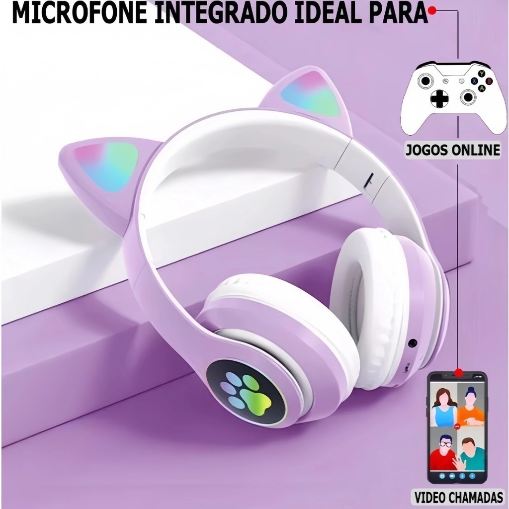 Fone De Ouvido Bluetooth Orelha Gatinho Infantil Led Sem Fio