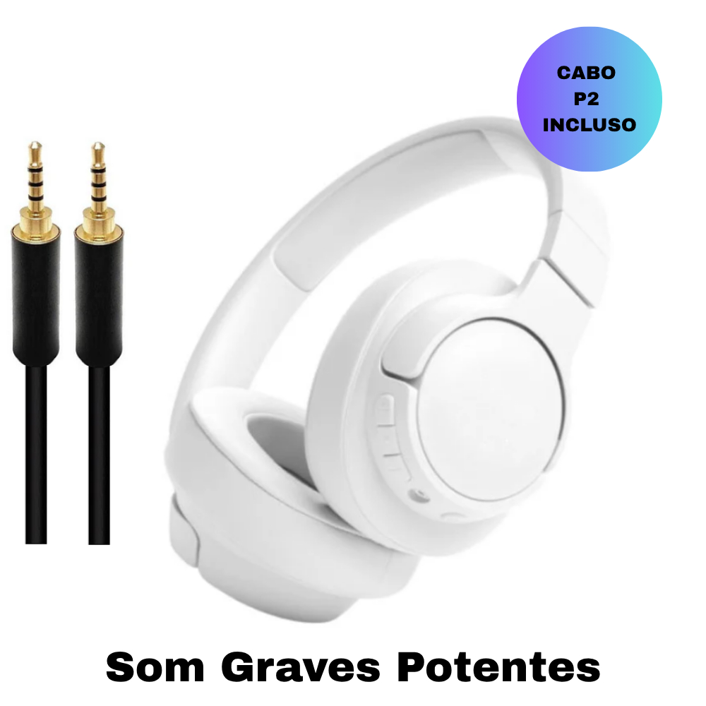 Fone de Ouvido Bluetooth Sem Fio 760 Kit com Cabo P2, Graves Potentes e Microfone Confortável
