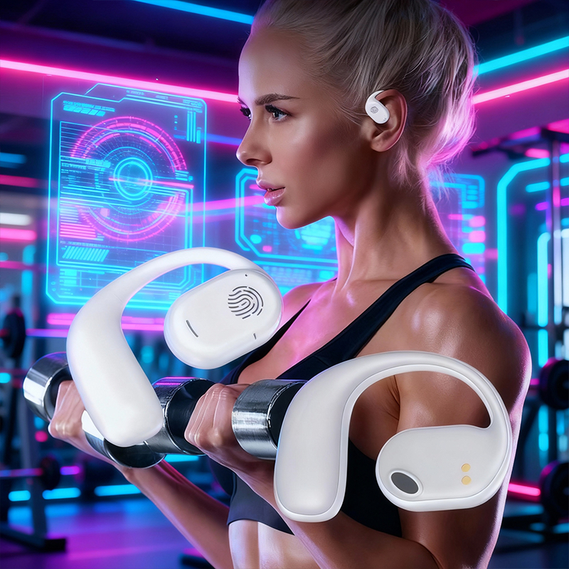 Fone de Ouvido com Condução Óssea Bluetooth 5.3 - Sem Fio, Clip Digital e Redução de Ruído -B8