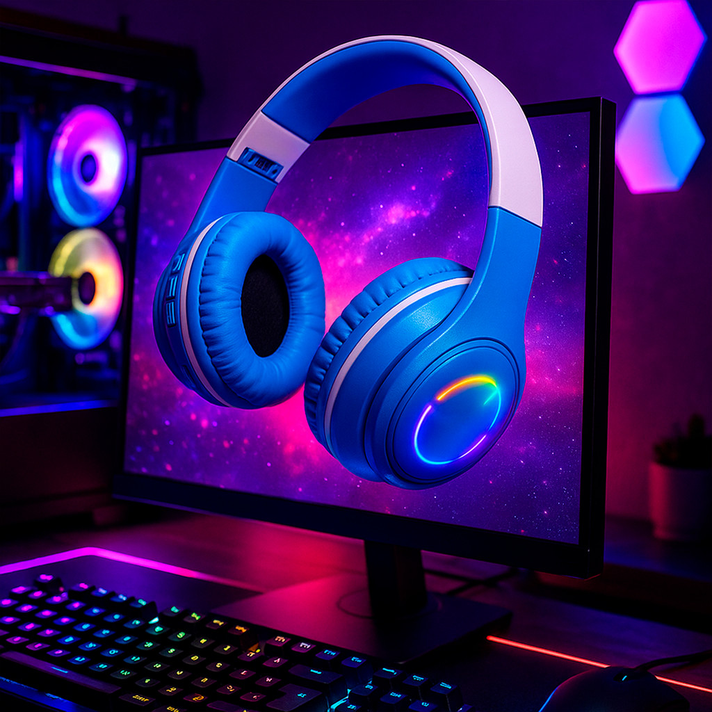 Fone De Ouvido Headset Bluetooth Sem Fio Iluminação RGB Ajuste Lateral MP3 Cartão SD Recarregavel