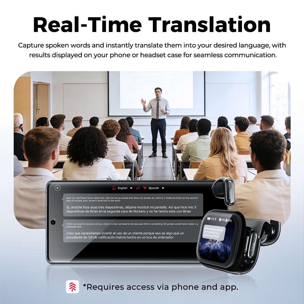 Fone De Ouvido HTC NE68 AI 135 Idiomas Em Tempo Real Tradução Fone Bluetooth 6.0 TWS Sem Fio Tela De Controle De Toque