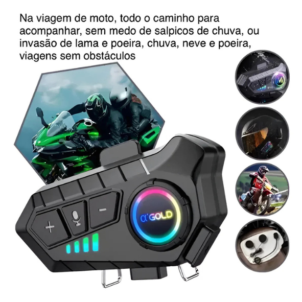 Fone De Ouvido Intercomunicador Bluetooth Sem Fio RGB À Prova D'água Para Capacete IPX6 A'gold