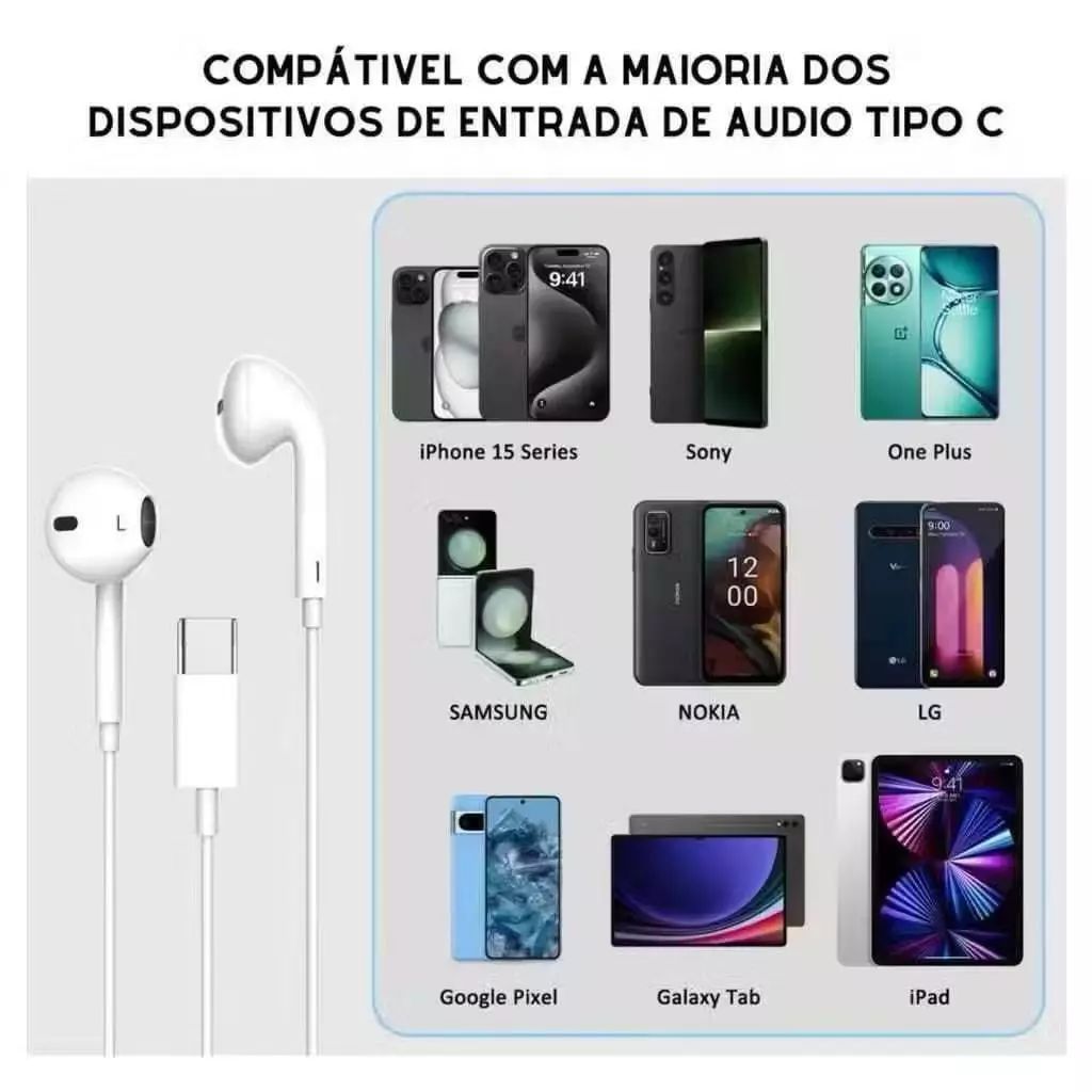 Fone de Ouvido Iphone Tipo-C com FIo e Microfone EmbutidoCompatível iPhone7-17