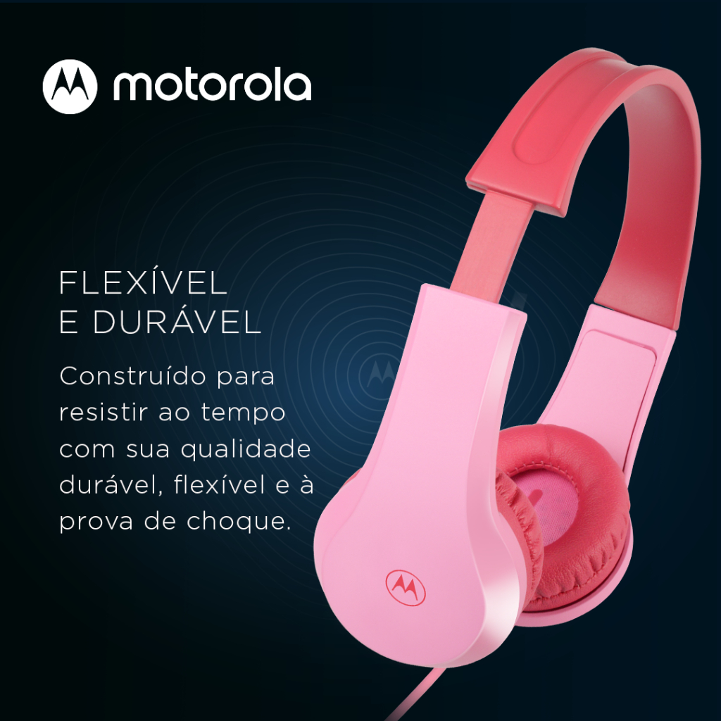 Fone De Ouvido Motorola Moto JR 200 Kids, Isolamento de ruido - Rosa