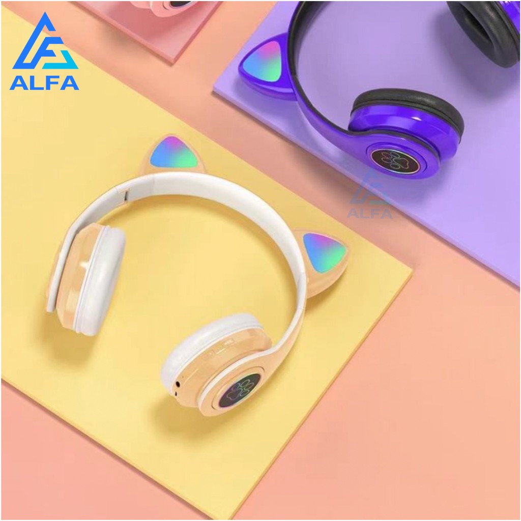 Fone De Ouvido Orelha Gato Bluetooth F23M Led RGB Iuz Headphone