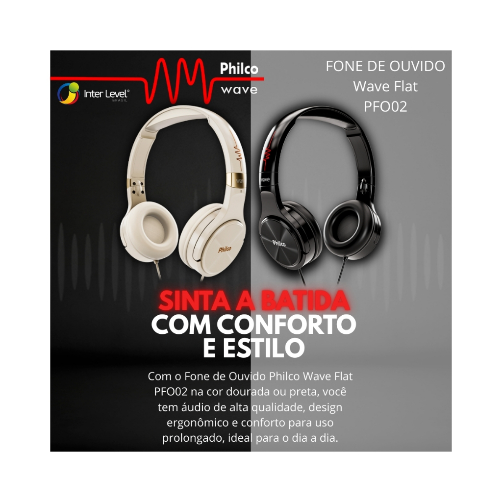 Fone de Ouvido Com Fio Philco PFO02 Wave Flat --- ESCOLHA A COR NA VARIAÇÃO / APENAS 1 PAR DE FONE --- ATENÇÃO: NÃO POSSUI CONECTIVIDADE BLUETOOTH! --- Descrição --- - Construído com componentes que priorizam a fidelidade de som e suavização de ruídos, o Fone de Ouvido Philco PFO02 Wave Flat vai tornar seus momentos ainda mais especiais. - Os potentes alto-falantes possibilitam a melhor resposta e preservação da autenticidade das mídias reproduzidas, enquanto a construção ergonômica, ajustes de altura e largura, e conchas almofadadas se adequam melhor e proporcionam o uso agradável por horas. - O PFO02 possui botão multifunção integrado no cabo e botão que possibilita atender ou rejeitar ligações e controlar a reprodução das músicas. - Conta também com cabo flat que não enrola, emborrachado e com design que garante maior durabilidade e evita nós indesejados. --- Características --- • Arco de cabeça ajustável; • Microfone embutido no cordão; • Cabo padrão TRRS que permite para atender/rejeitar chamadas e controlar músicas com botão multifunção; • Alça de cabeça almofadada; • Concha auditiva almofadada redonda; • Driver com imãs de neodímio; • Diâmetro do driver 30mm (x 2); • Impedância de 32 ohms; • Frequência de resposta: 20 até 20.000 Hz; • Sensibilidade de áudio: -42 dB; • Cabo com comprimento de 1,20m; • Cor: Preto / Dourado. (Escolha na variação) --- Dimensões --- - Do Produto - • Altura: 18,5 cm; • Largura: 17,2 cm; • Comprimento: 6 cm; • Peso: 0,146 kg. - Da Embalagem - • Altura: 26,2 cm; • Largura: 22,3 cm; • Comprimento: 4 cm; • Peso: 0,216 kg. --- Composição da Embalagem --- • 1 Fone de Ouvido PFO02 Wave Flat; • 1 Manual. — Perguntas Frequentes — O produto é original? Sim, pirataria é crime e deve ser denunciado à Shopee. Acompanha Nota Fiscal? Sim. O produto tem a garantia legal do fabricante? Sim. Consulte o campo garantia do anúncio. Estoque limitado – Garanta já o seu! Compre agora e aproveite nossas promoções especiais!