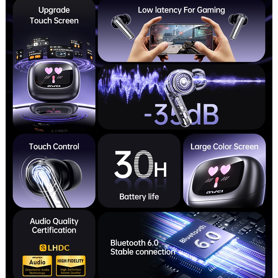 🎉 Bem-vindo à loja oficial Awei! 💖 Desfrute de grandes ofertas, produtos autênticos e serviço rápido! 💎 100% Original Awei – direto do nosso HQ Global 🚀 Pedido antes de 2PM = Envio no mesmo dia 📦 Todos os itens em estoque com caixa e manual 💬 Perguntas sobre perguntas? Toque na torneira “CHAT” – estamos aqui para você! 💌 Siga-nos para cupons exclusivos 💖 Amor? Deixe um Deixe um ⭐⭐⭐⭐⭐ Revisão de revisão – obrigado! Vantagens da chave✨ 🔊 Cancelagem de ruído ativo de ruído ativo (ANC) Profundidade ANC de profundidade ANC: > -35dB Profundidade ENC: ≥ -50dB para chamadas cristalinas. 📱 Tela Inteligente com Controles de Toque Exibição de cor grande grande para fácil navegação Controle de música, ajuste de volume, seleção EQ e muito mais Brilho da tela personalizável e papel de parede Encontre meu recurso de fones de ouvido e lanterna Sincronização de 13 opções de idiomas de 13 opções e letras Carregamento rápido de carregamento rápido: 10 minutos = 180 minutos de música 🔋 Duração da bateria de longa duração Bateria Earbuds Bateria: 35mAh (1,5 horas de carga) Bateria do estojo de carregamento da bateria: 500mAh (carga de 2,5 horas) Tempo de conversação: 4 horas Tempo de reprodução de música: 5 horas Tempo de espera: 200 horas 🎶 Qualidade de som Superior Alto-falante: 10mm / 32Ω para graves profundos e agudos claros Sensibilidade de sensibilidade: 100±3dB para som rico Faixa de Resposta de Frequência: 20Hz-20kHz para som de alcance total 💧 Resistência à água IPX6 À prova de suor e à prova de respingos para exercícios e uso externo. 🔗 Conectividade perfeita sem costura Bluetooth 6.0 com uma faixa de 10m Suporta protocolos A2DP, AVRCP, HSP, HFP Porta de carregamento tipo C para recargas rápidas 📦 O que está na caixa? Cabo de carregamento USB USB Manual do usuário (inglês e chinês) Pontas de ouvido extras para um ajuste confortável Prepare-se para uma experiência de áudio excepcional. Desfrute de um serviço rápido e confiável, com devoluções fáceis e suporte responsivo. Os fones de ouvido Awei Bluetooth ANC oferecem som superior, controles fáceis e conforto durante todo o dia. 🎶