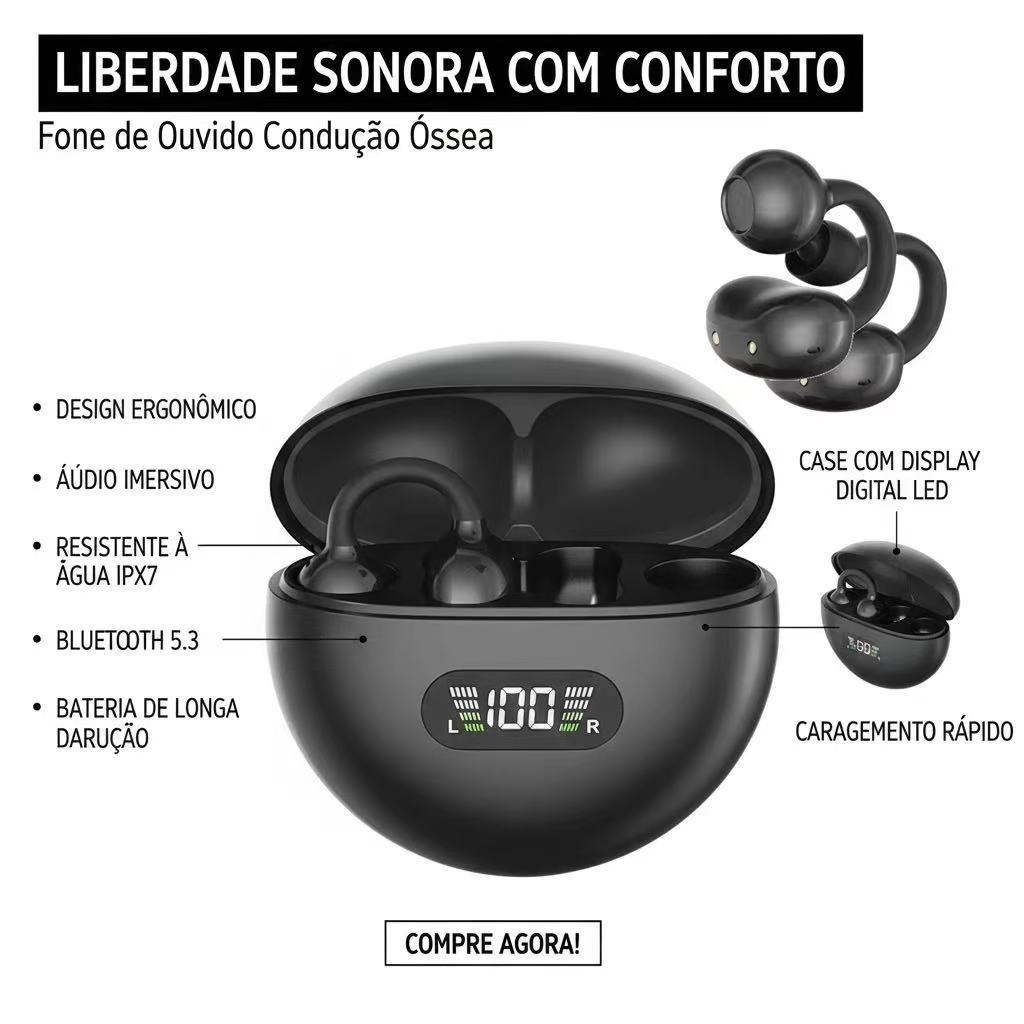 Fone De Ouvido Sem Fio Bluetooth 5.3 Sport Earcuffs Esportivo