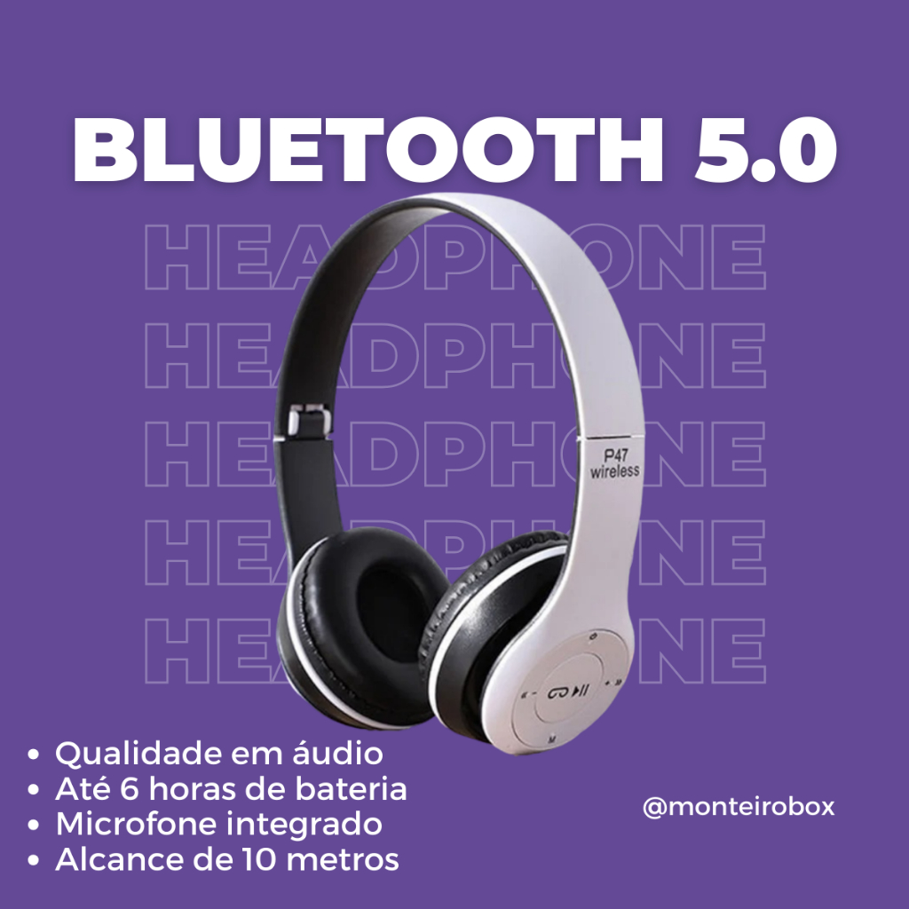 | Fone Headphone Sem Fio Estéreo Cartão SD Rádio FM Bluetooth 5 Dobrá... este produto | R$ 49,90 | — | 4.8/5 | — |