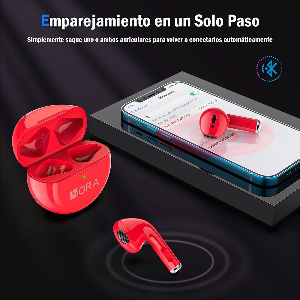 Fone Ouvido Sem Fio 1Hora Aut119m Bluetooth 5.0 Vermelho