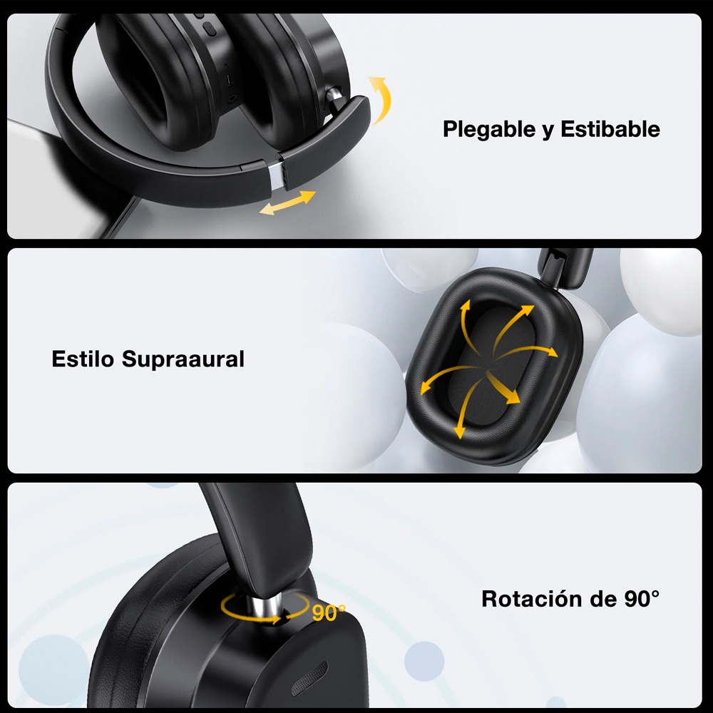 Fone de Ouvido Sem Fio 1Hora Headphone Bluetooth 5.3 Preto, Som Imersivo, Modos de Áudio EQ, Design Dobrável e Confortável 1. Som Imersivo com Modos de Áudio EQ Equipado com drivers dinâmicos de 40mm, o headphone sem fio 1Hora proporciona áudio estéreo de alta definição com equilíbrio entre graves, médios e agudos. Com três modos de equalização ajustáveis (Bass, Vocal e Pop), permite personalizar a experiência sonora de acordo com seu estilo musical. 2. Até 100 Horas de Reprodução Contínua A bateria de 1000mAh garante várias horas de uso contínuo com uma única carga, proporcionando semanas de reprodução sem necessidade de recarga frequente. Ideal para viagens, treinos, trabalho e lazer, eliminando preocupações com autonomia durante o dia. 3. Design Dobrável e Conforto Prolongado Construído com almofadas de couro PU macio e espuma de alta densidade, o fone se ajusta ergonomicamente para máximo conforto. A haste ajustável e os protetores auriculares giratórios em 90° garantem um encaixe perfeito, tornando-o ideal para uso prolongado sem incômodos. 4. Conectividade Bluetooth 5.3 com Chamadas Nítidas O Bluetooth 5.3 proporciona conexão mais rápida, estável e com maior alcance. Com microfone embutido e controle de botão único, permite atender chamadas com clareza e praticidade, garantindo comunicação eficiente em qualquer lugar. 5. Ampla Compatibilidade para Diferentes Dispositivos Compatível com qualquer aparelho que suporte Bluetooth ou conexão via cabo de 3,5mm, permitindo o uso com smartphones, tablets, notebooks e outros dispositivos. Fácil de parear, oferece versatilidade para chamadas, reuniões online e entretenimento diário. Garantia 90 dias.