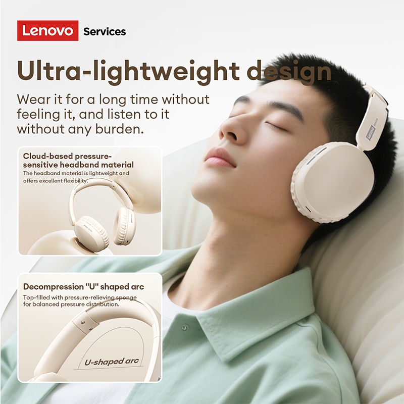 Fones De Ouvido Bluetooth Lenovo LS106 E Fone Sem Fio Com Áudio Espacial 6.0 40 Mm Design Dobrável