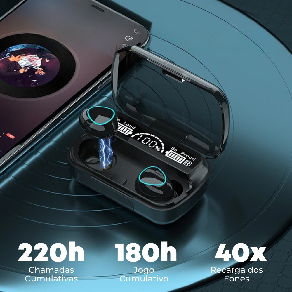 Fones de Ouvido Bluetooth M10 TWS 3500mAh: Estéreo 9D, À Prova D'água, Microfone, Caixa de Carregamento Sem Fio