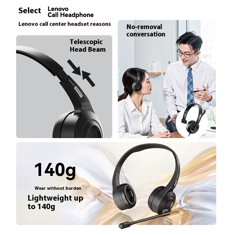 Fones De Ouvido Com Fio Lenovo E01 Microfone Cancelamento De Ruído E Especializados Para Uso Em Atendimento Ao Cliente C